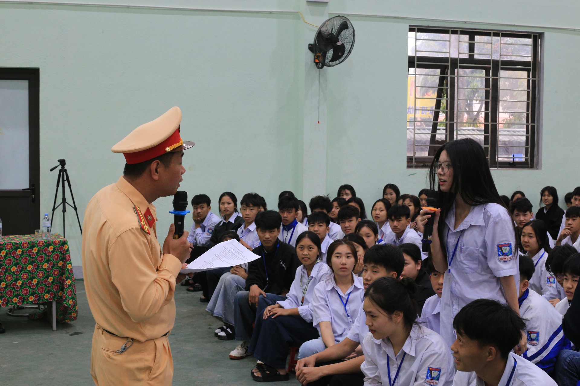 ... giao lưu hỏi - đáp kiến thức giao thông với học sinh.