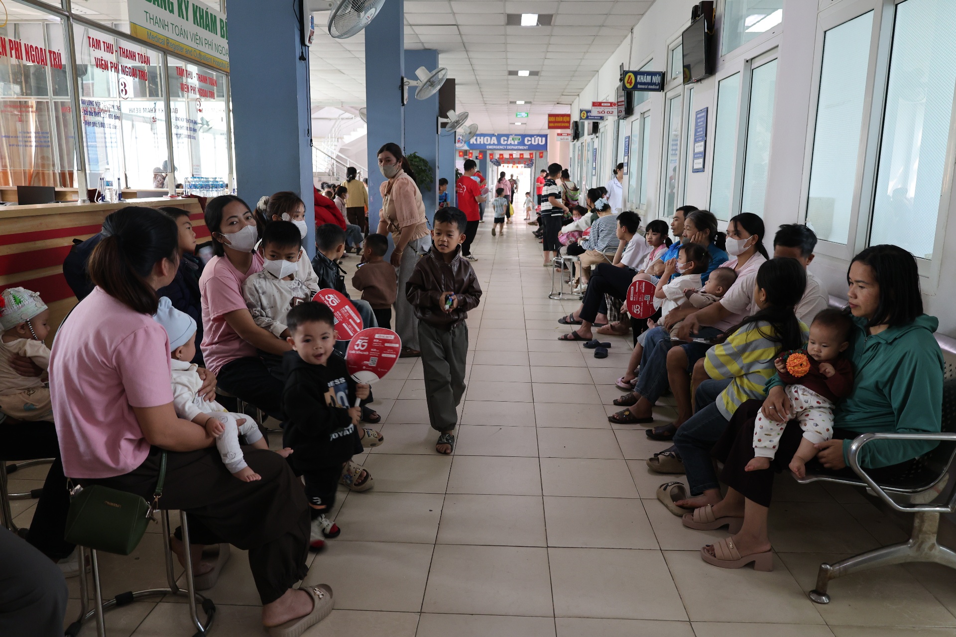 Người dân chờ khám sàng lọc miễn phí bệnh tim bẩm sinh cho trẻ.