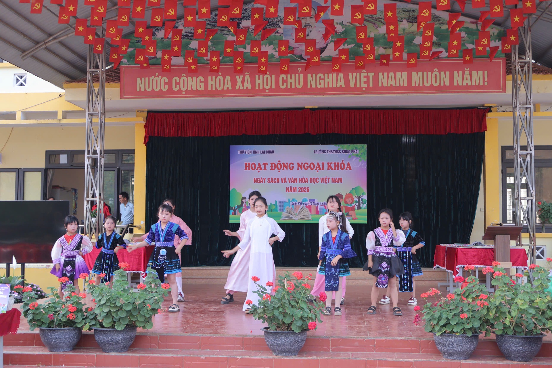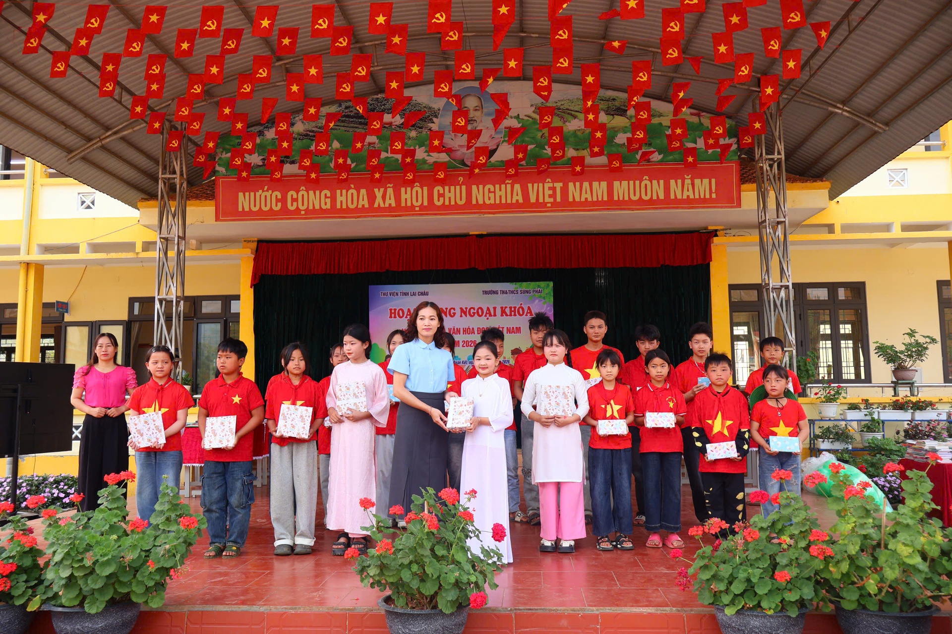 Dự chương trình có đại diện lãnh đạo Thư viện tỉnh; Ban Giám hiệu Trường Tiểu học và THCS Sùng Phài; các thầy, cô giáo và các em học sinh toàn trường.