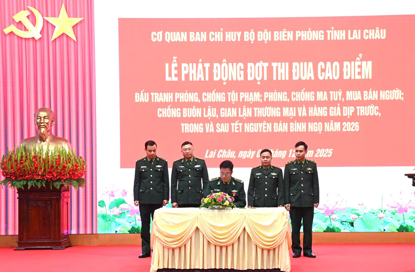 Ngày 9/12, Ban Chỉ huy Bộ đội Biên phòng (BĐBP) Lai Châu phát động đợt thi đua cao điểm đấu tranh phòng, chống tội phạm; phòng, chống ma túy; phòng, chống mua bán người; chống buôn lậu, gian lận thương mại và hàng giả trên biên giới, dịp trước, trong và sau Tết Nguyên đán Bính Ngọ năm 2026.