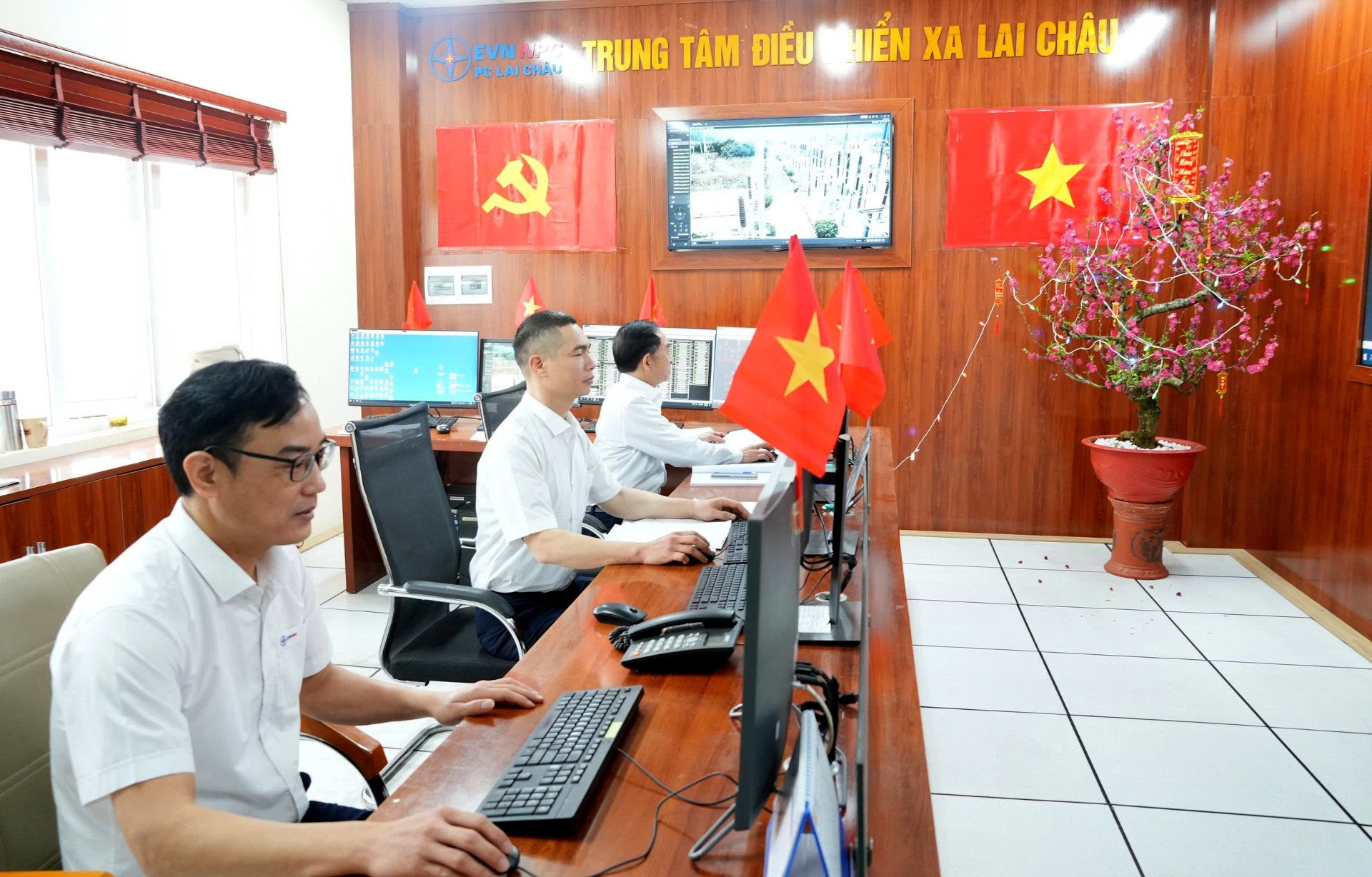 Cán bộ TTĐKX CTĐL Lai Châu trực vận hành.